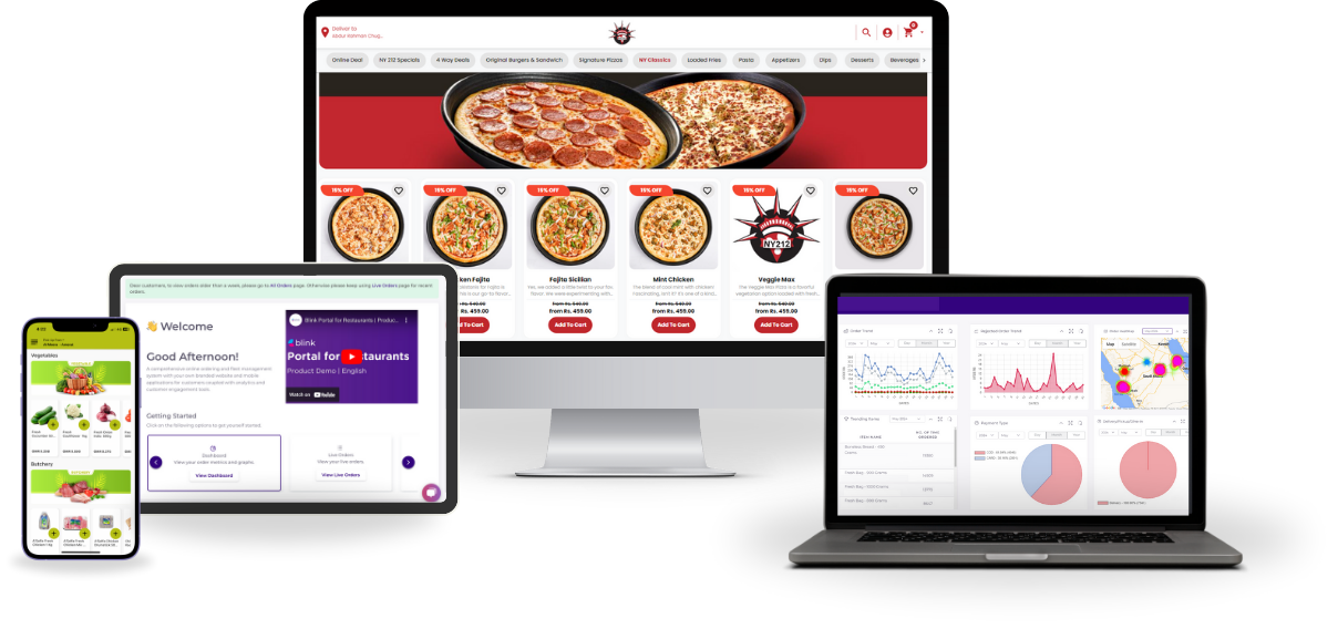 Blink does the heavy lifting for you by setting up your online menu, increasing your online visibility, firing orders to the kitchen, and assigning deliveries to riders.