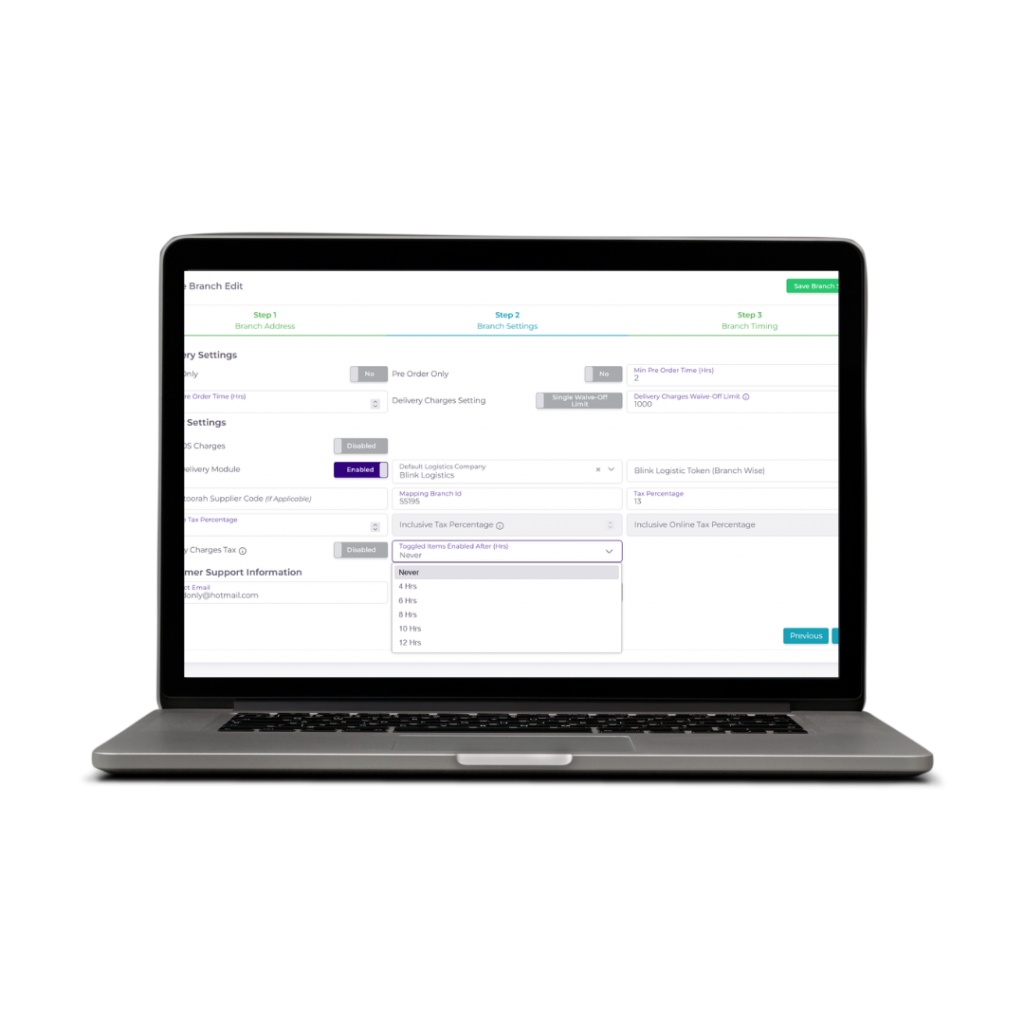 Merchants can now set items to auto-enable at specific hours for each branch.