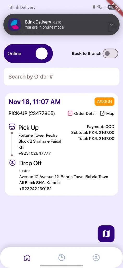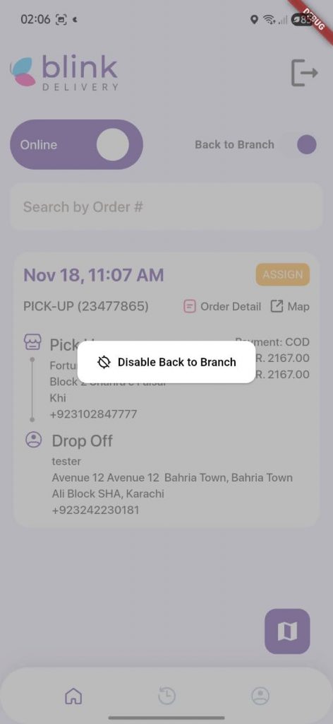 A new “Back to Branch” status button has been added to the Rider App, allowing riders to update their status when returning to the branch. This improves dispatcher visibility and streamlines order handovers.