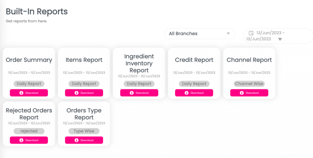 • The page will display an overview of different system reports automatically generated. Here, the merchant can click on the Order Type Wise Sales Report to view the breakdown of sales for each order type.