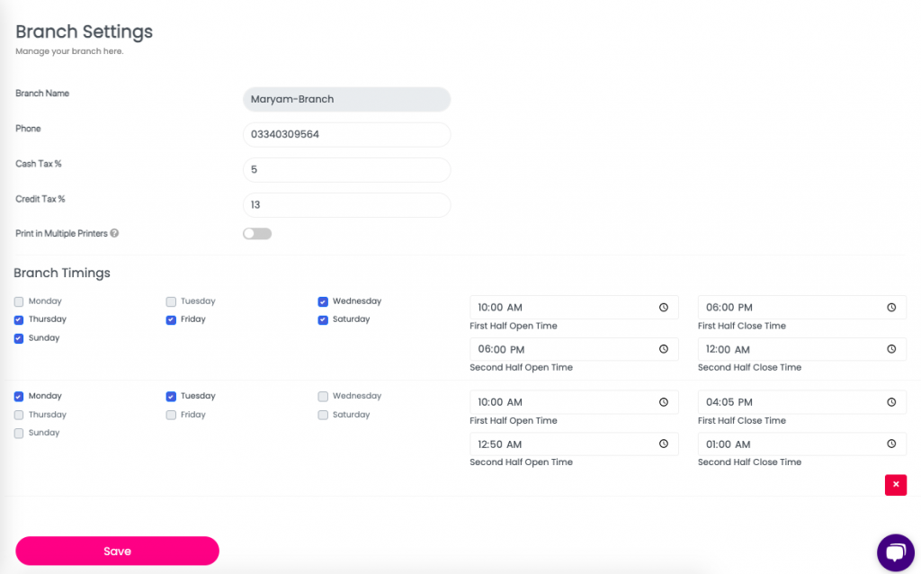 • Merchants can access the system’s settings, then click on branch settings and define the operating hours for each branch.