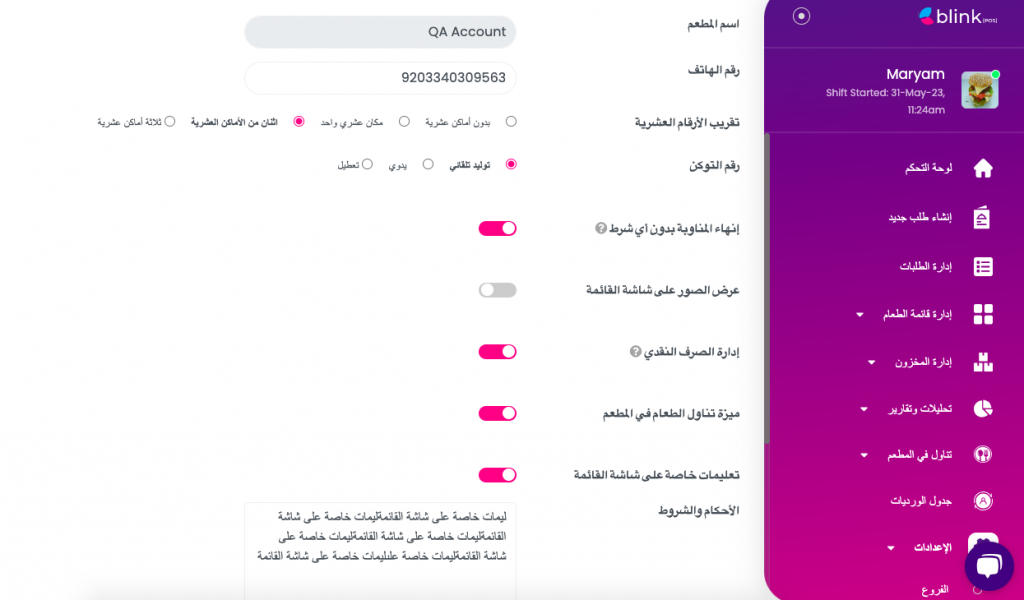 • The POS system now includes complete translations and localization in the Arabic language.