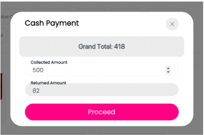 The Point of Sale (POS) system now has the ability to automatically calculate the correct return amount for each transaction. When a customer provides cash that exceeds the total amount due, the system instantly determines the precise change to be returned. This feature eliminates manual calculation errors and saves time for cashiers, enabling them to serve customers more quickly and accurately.