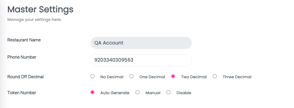 • Merchants can access the system’s settings, then the master settings and specify the desired decimal precision for numeric values. For example, they can choose from one decimal, two decimal, three decimal, or no decimal.